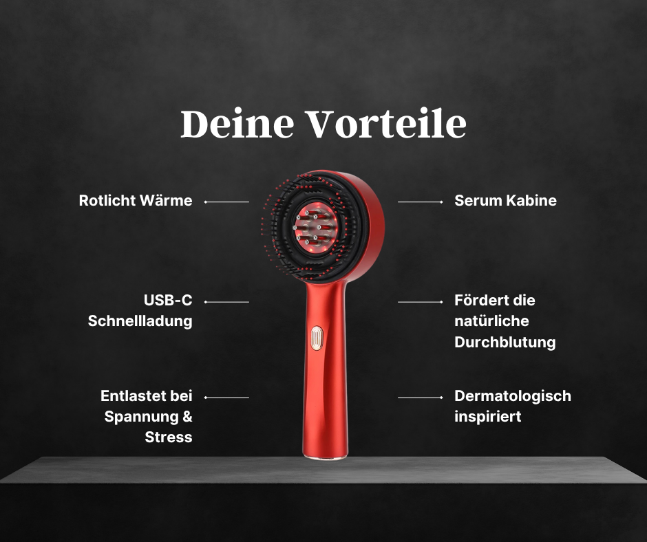Die elektrische Kopfhautmassagebürste, die Stress löst, die Durchblutung aktiviert und deinem Haar neue Energie schenkt – mit sanfter Wärme & intelligentem Design.
