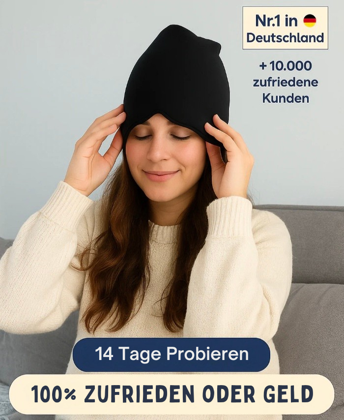 Viele Kunden berichten: weniger Anfälle, kürzere Dauer und endlich wieder erholsame Tage. Unsere Anti-Migräne Gel-Haube ist wie eine sanfte Umarmung für deinen Kopf – die tiefenwirksame Kühlung lindert Druck, entspannt verspannte Muskeln und reduziert Migräneschmerzen ganz ohne Medikamente.